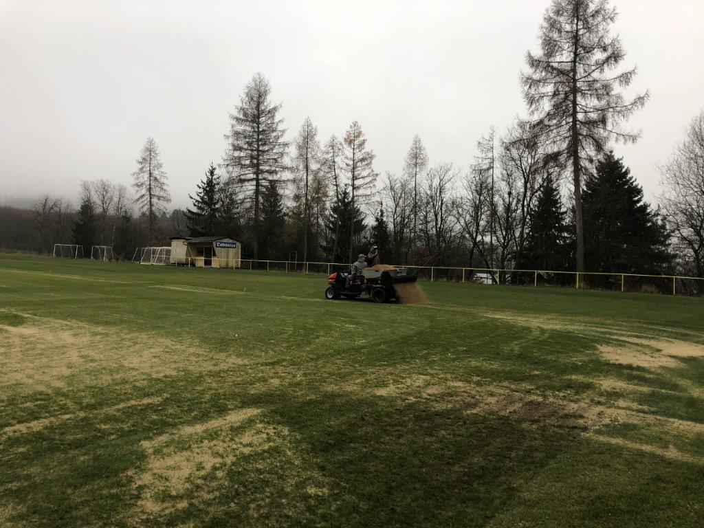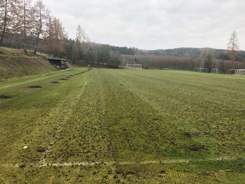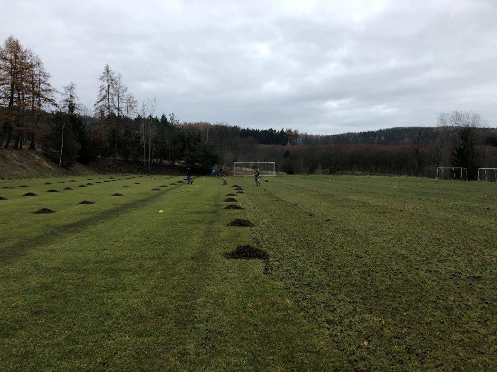 Oprava povrchu fotbalového hřiště aerifikací a pískováním