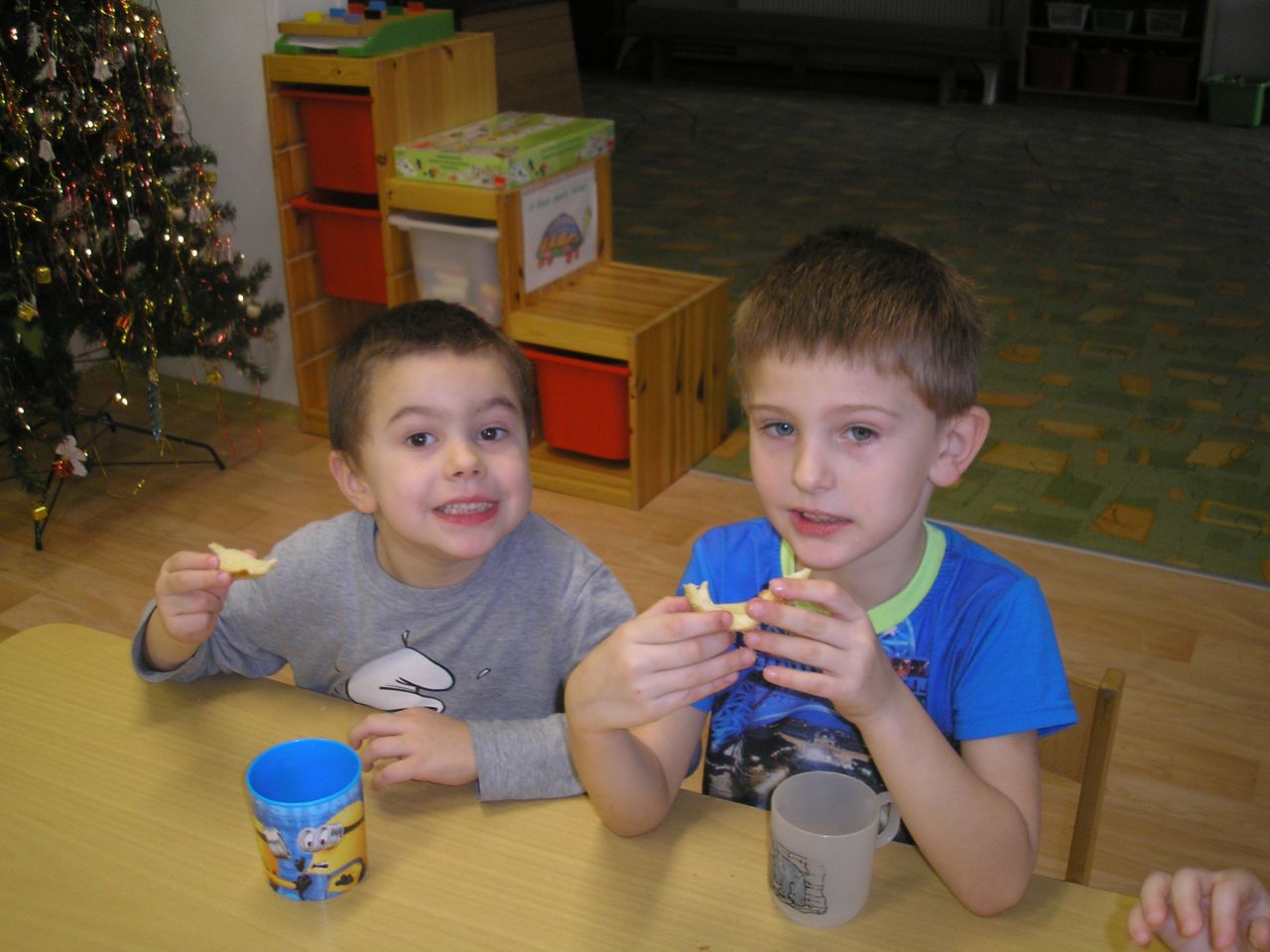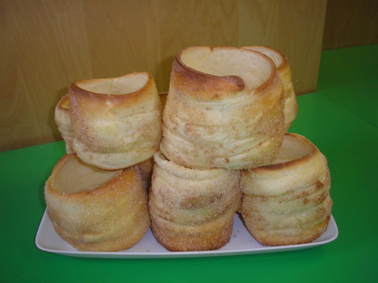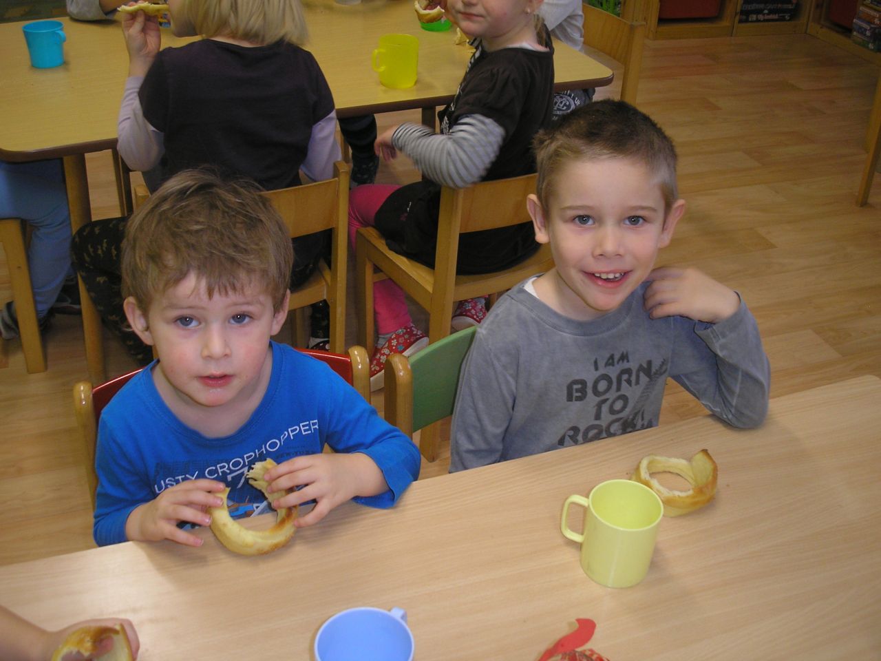 Děti ze třídy Berušek si s paní učitelkou Lenkou vyzkoušely pečení trdelníků. Donesly také na ochutnání dětem ze třídy Včelek.