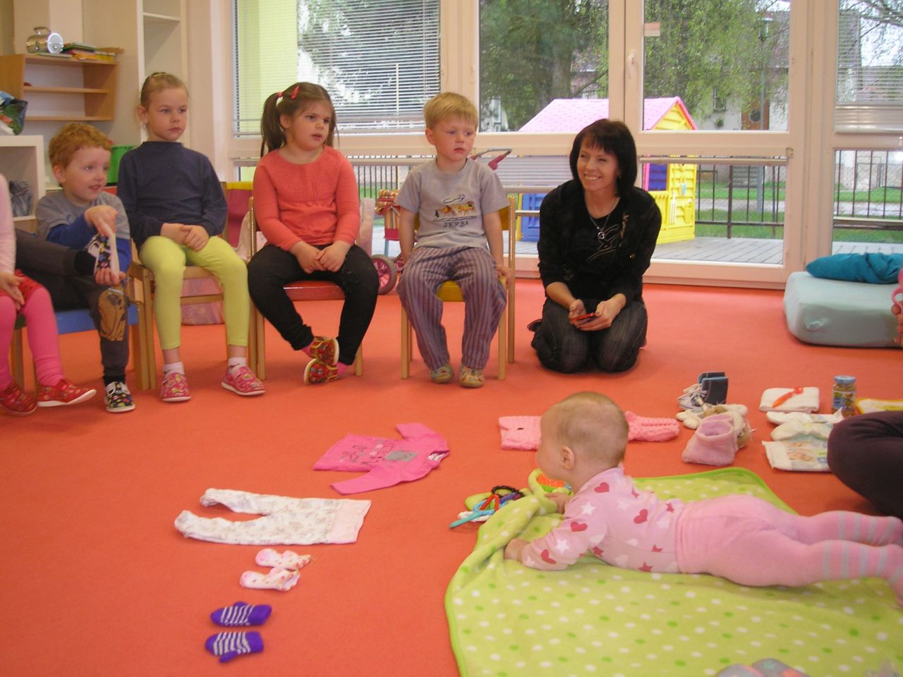 Do třídy Berušek přijala pozvání paní Lusková s Natálkou. Ukázala dětem, co vše potřebuje malé miminko a jak o něj správně pečovat.